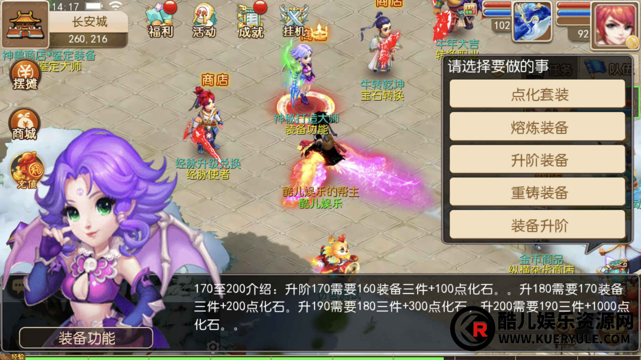 免费转职 免费转换30以下宝石 自由交易 点化套装 (所有NPC都在长安城天台下方)