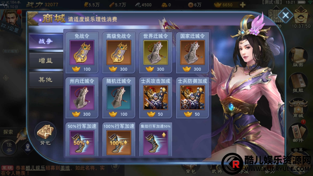 汉王纷争中,此时烽火狼烟四起,各势力共逐天下。玩家可以绑元城主的身份,通过建造城池、招募武将、掠夺资源等途径,