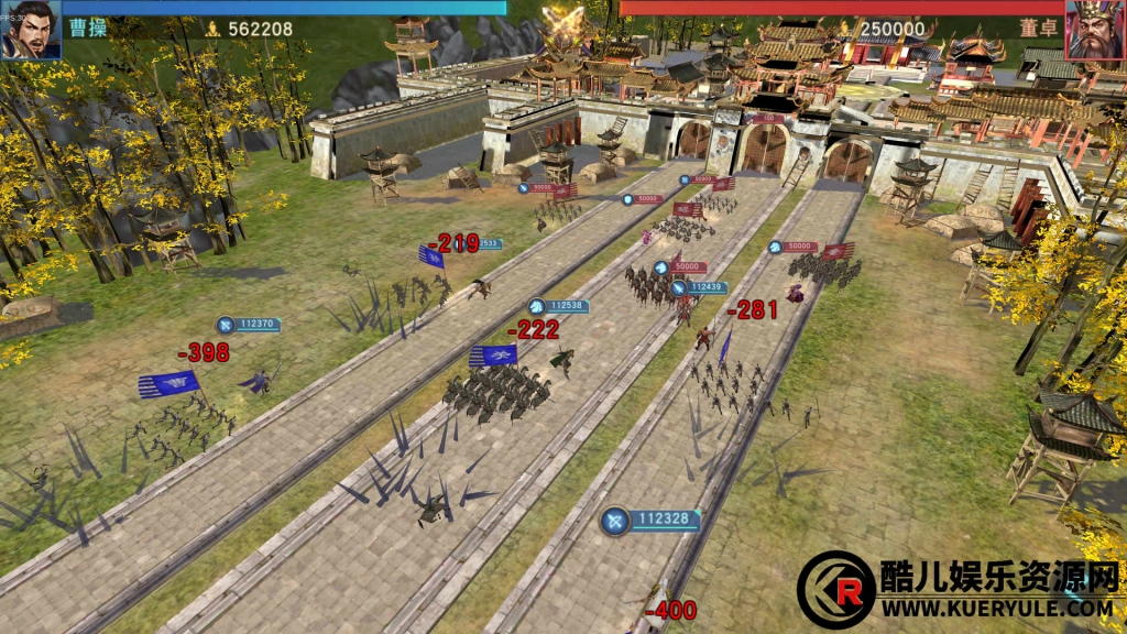 玩家守城之时,刀盾兵与重骑兵一定要放在相对靠前的位置,充当前排肉盾,而其他三个兵种应放在后方,充当输出兵种。