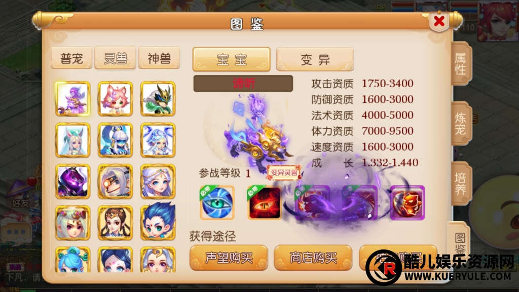 7.宝宝获得途径:在长安找到超级泡泡,使用一定神兜兜,兑换神兽,